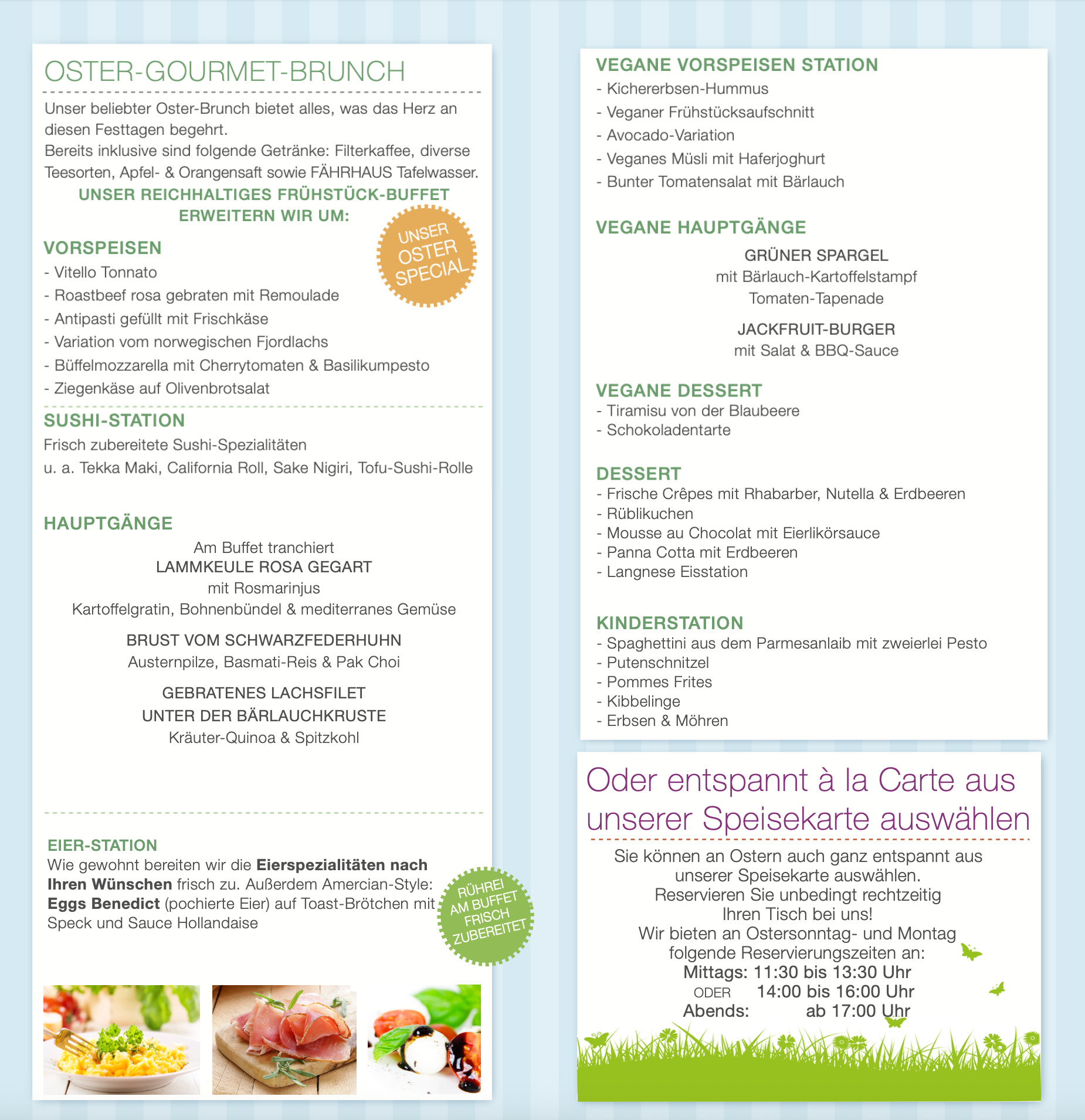 | Brunch jeden Sonntag | 10:30 - 13:30 Uhr |