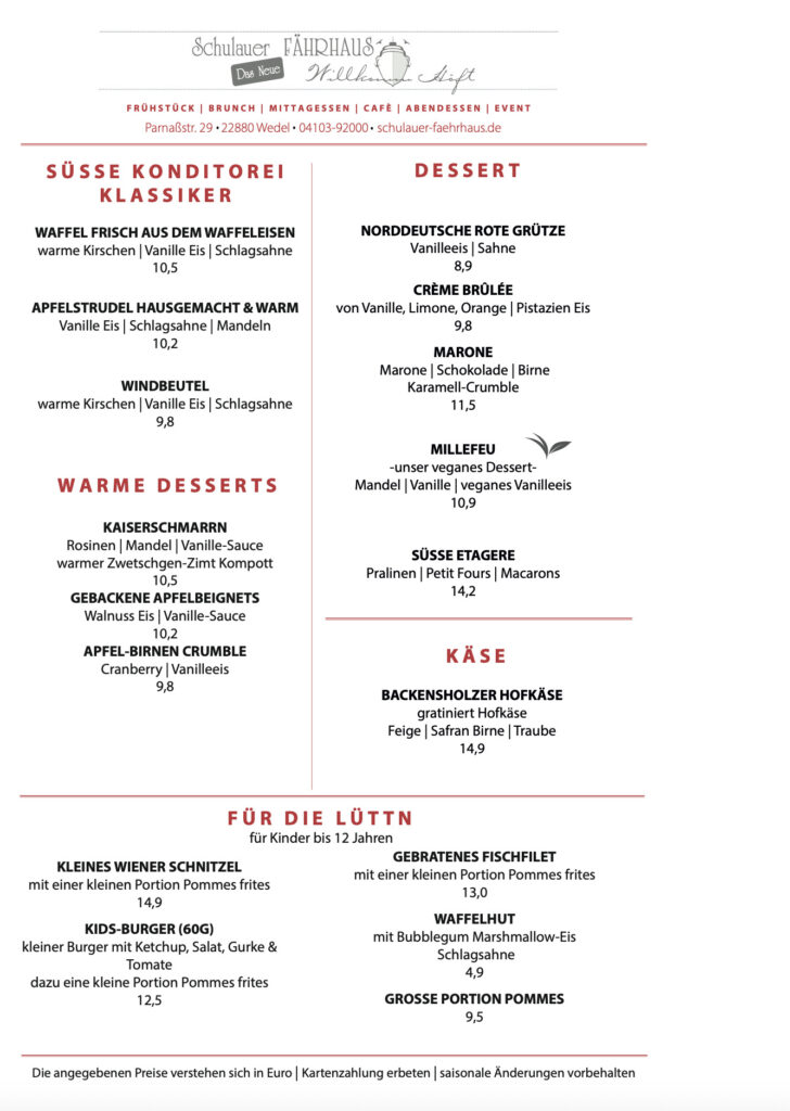 Ein echtes Novum: im NEUEN Schulauer FÄHRHAUS sorgt täglich in der hauseigenen Konditorei unsere Konditoren-Crew für frische und leckere Torten und Desserts. Feststehende Spezialitäten und fortwährend neue Kreationen bieten jede Menge Abwechslung.